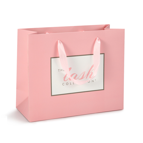 热卖定制标志印刷回收礼品印刷粉色购物纸袋带丝带手柄包装纸袋